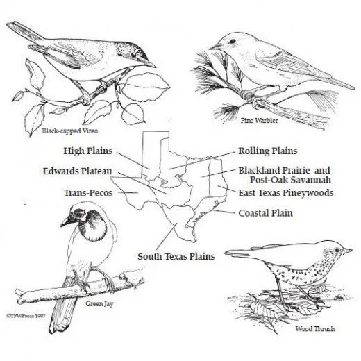Texas has a vast regional variety. The State is 800 miles from its north and south borders or east and west borders. Elevations differ from 8,000+ feet to sea level. The eight regions exhibit the ecological diversity of the state. As birds can be specialized to a particular habitat, some birds are easier to find in certain areas. The Coastal Plain will harbor both offshore birds and coastal marsh loving birds. The Trans Pacos area, in contrast, is home to birds looking for desert scrub and grasslands and higher altitudes. However, some birds aren't so specialized and can be found all over the state, such as the Great Horned Owl and Great Blue Heron.